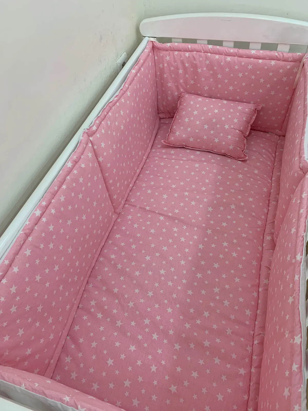 Pack Tour de Lit, Oreiller et Matelas – Etoilé rose pour Lit 60×120 cm